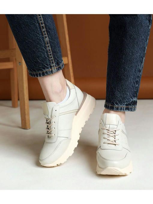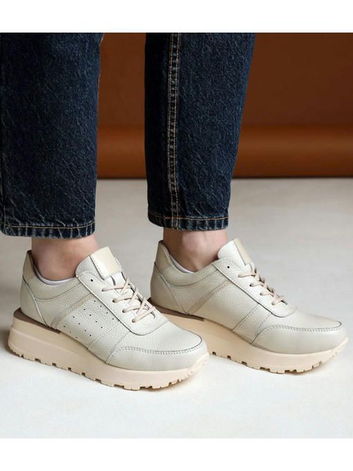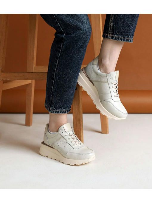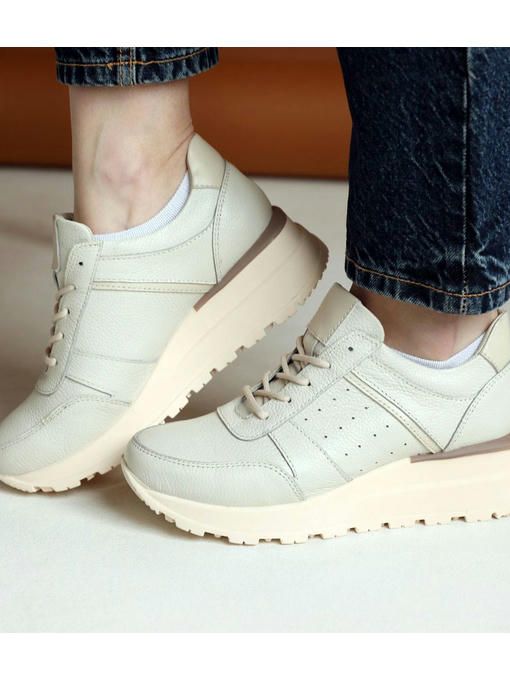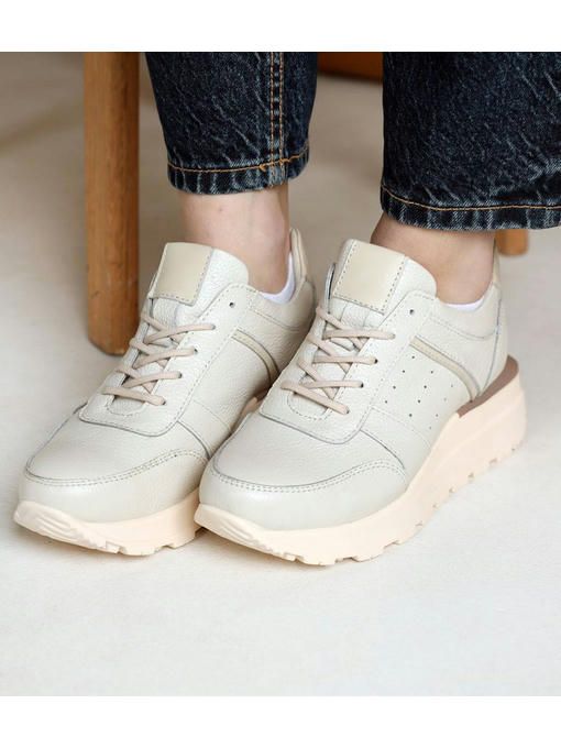 Кроссовки Бежевые. Невероятно стильные кроссовки, высокого качества, удобные, практичные и легкие, вес полупарка – 350 гр. Выполнены из натуральной кожи, внутренняя подкладка – кожаная. Кожаная мемори стелька обеспечит комфорт в течение всего дня. Подошва – EVA, износостойкая, ее высота – 2,5-5 см; Кроссовки 585073 базовые, отлично подойдут к каждому Вашему образу и будут привлекать внимание окружающих.