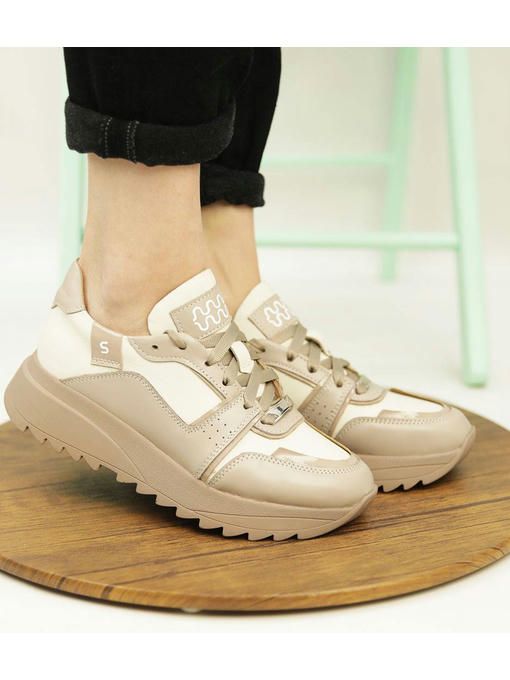Женские кроссовки в бежевых оттенках. Невероятно стильная, удобная и качественная пара, выполненна из натуральной кожи. Стелька легкая, кожаная, придает комфорт во время хождения. Подошва – EVA, высота подошвы – 4,5 см; Кроссовки отлично подойдут к каждому образу.