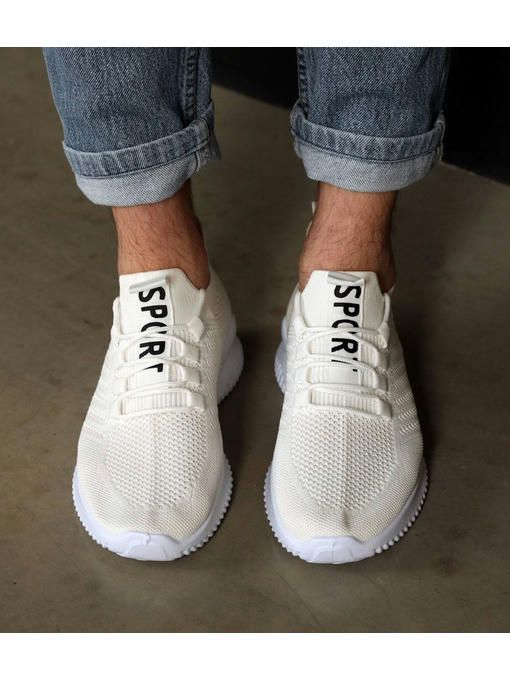 Кроссовки SPORT в белом цвете, выполнены из текстиля. Внутренняя подкладка и стелька текстильные, подошва на пене, высота ее 3 см; . Пара очень легкая, вес полупарка всего 200 грамм. Кроссовки классные, максимально универсальные и практичные, легко и быстро обуваются.
