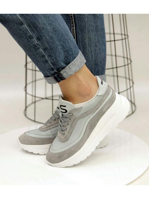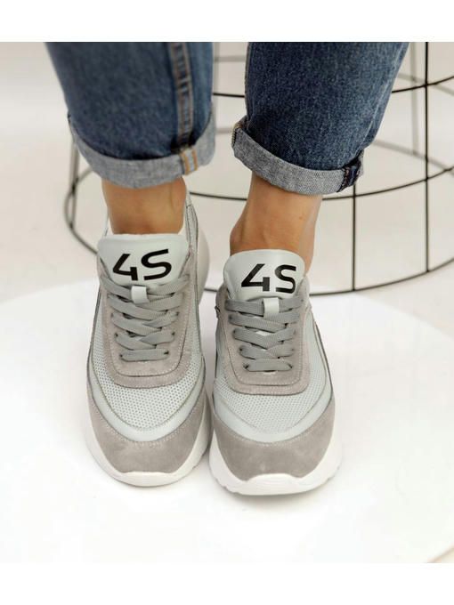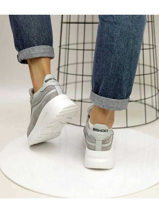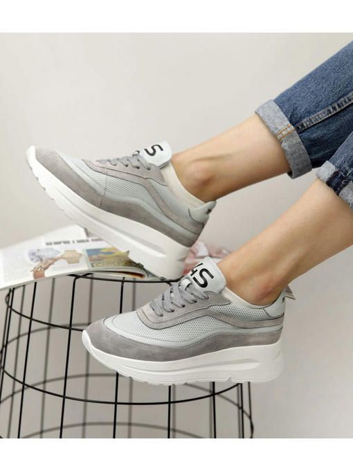 Кроссовки женские в универсальном сером цвете. Актуальная, стильная и удобная пара, выполненна из натуральной кожи со замшевыми вставками. Подкладка – кожаная, стелька кожаная, просиликоненная, комфортно чувствуется при ношении. Подошва – EVA, износостойкая, высота подошвы – 5 см; Кроссовки идеально подойдут на каждый день и под каждый образ.