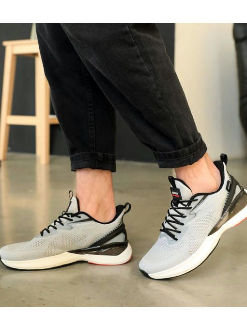 Мужские кроссовки в стильном сером цвете с белой подошвой. Кроссовки легкие, выполнены из текстиля, внутри из текстиля, стелька удобная, текстильная. Подошва – пена, легкая и добавляет удобства во время хождения. Кроссовки маломерят, поэтому обращайте внимание на размерную таблицу.