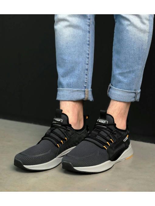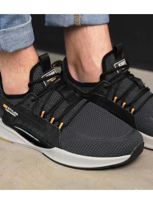 Мужские кроссовки в стильном темно-сером цвете с белой подошвой. Кроссовки легкие, выполнены из текстиля, внутри из текстиля, стелька удобная, текстильная. Подошва – пена, легкая и добавляет удобства во время хождения. Кроссовки маломерят, поэтому обращайте внимание на размерную таблицу.