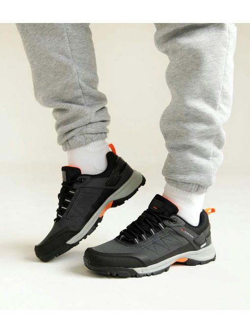 Термокроссовки универсального серого цвета, выполнены из влагоотталкивающего текстиля. Внутренняя подкладка и стелька текстильная, подошва на пене. Кроссовки очень легкие, вес полупарка всего 270 грамм, протектор из терморезины. Кроссовки максимально универсальные и практичные, отлично подойдут на каждый день и на любую погоду.
