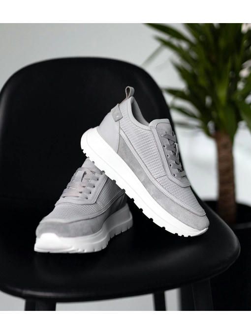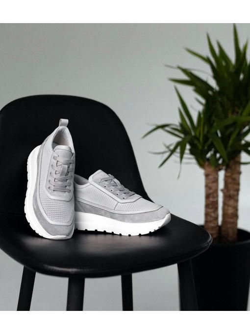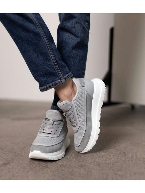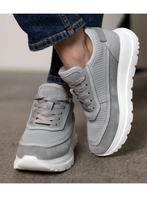 Кроссовки женские в сером цвете. Актуальная, стильная и удобная пара, выполнена из сочетанием натуральной кожи и замши. Подкладка – кожаная, стелька кожаная, просиликоненная, комфортно чувствуется при ношении. Подошва – EVA, износостойкая, высота подошвы – 4,5 см; Пара легкая, вес полупарка всего 290 грамм. Кроссовки 584814 идеально подойдут на каждый день и под каждый образ.