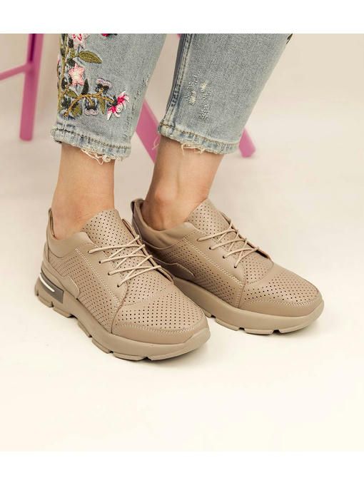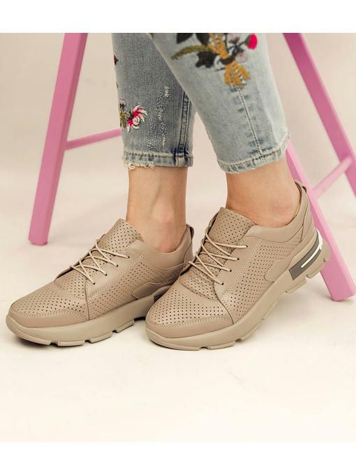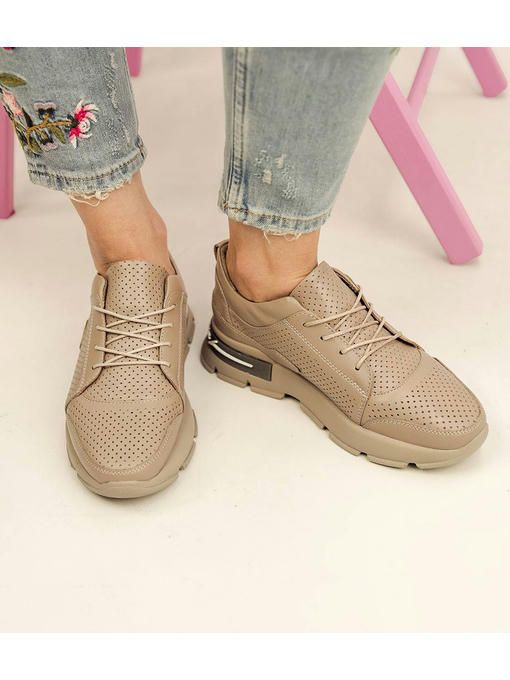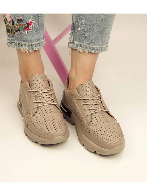 Темно-бежевые кроссовки с перфорацией выполнены из натуральной кожи. Кожаная стелька обеспечит комфорт в течение всего дня. Невероятно удобная и легкая модель. Кроссовки за счет своего минималистического дизайна прекрасно подойдут к каждому Вашему образу и будут привлекать внимание окружающих.