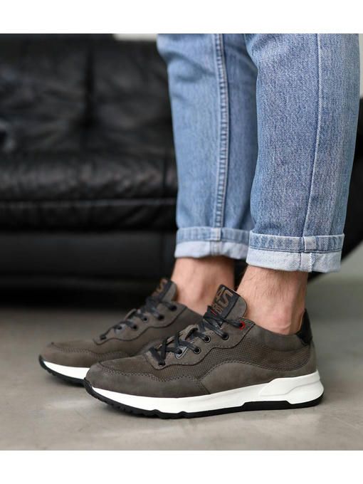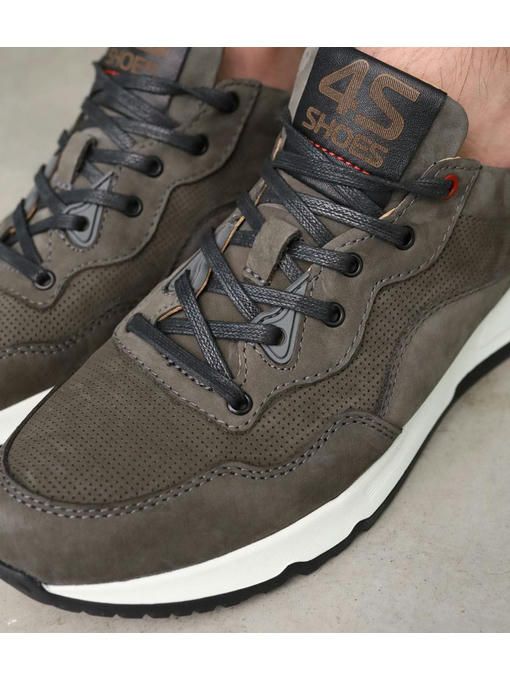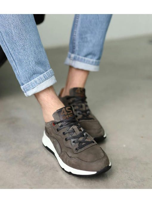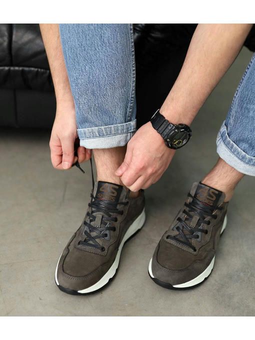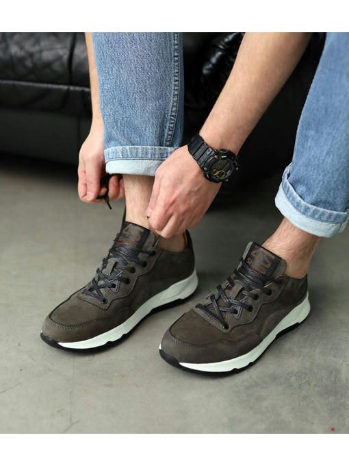 Мужские кроссовки в темно-сером коричневом цвете, выполнены из нубука. Внутренняя подкладка кожаная, стелька – кожаная, просиликоненная. Стильная износостойкая подошва – EVA. Кроссовки легкие, вес полупарка – 280 гр. Максимально комфортная и универсальная пара, которая отлично подойдет к каждому образу.
