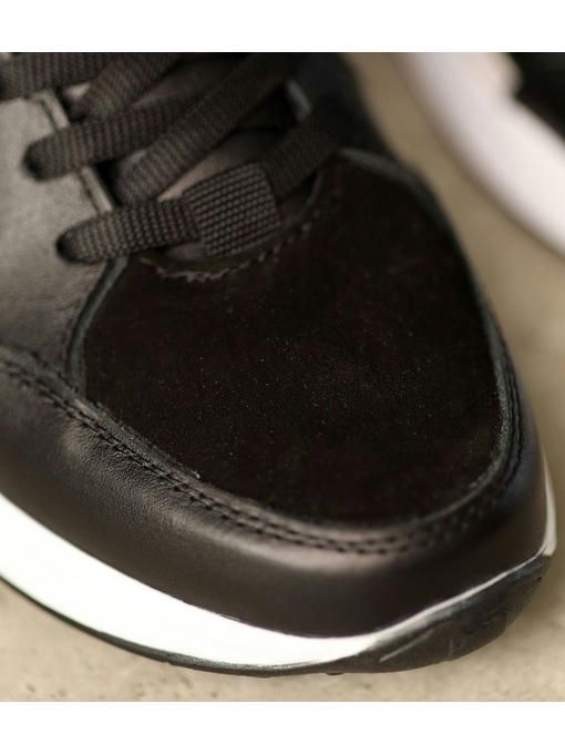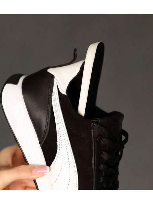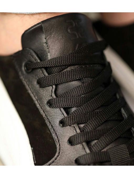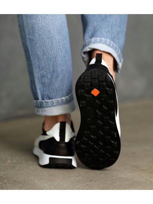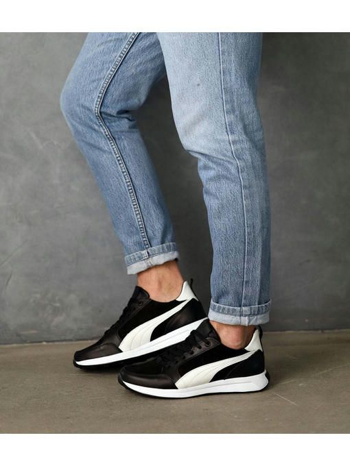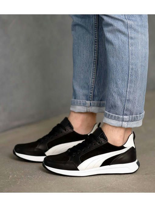 Мужские кроссовки в черно-белом цвете выполнены с сочетанием натуральной кожи и нубука. Внутренняя подкладка – текстильная, стелька – текстильная, просиликоненная. Подошва EVA – износостойкая. Кроссовки легкие, вес полупарка – 300 гр. Максимально комфортная и универсальная пара, которая отлично подойдет к каждому образу.