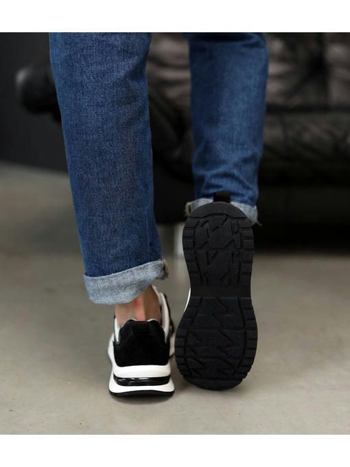 Женские кроссовки со стильным сочетанием черного и белого цвета. Выполнены из натуральной замши и кожи. Невероятно удобная и легкая модель, вес полпарка всего 200 грамм. Кроссовки станут отличным элементом Вашего образа и будут привлекать внимание окружающих.