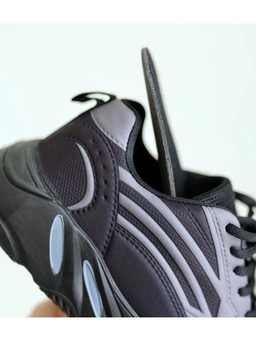 Кроссовки Yezy в черно-сером цвете, выполненные из текстиля. Внутренняя подкладка и стелька текстильная, подошва на пене. Кроссовки очень легкие, вес полупарка всего 315 грамм. Кроссовки классные, максимально универсальные и практичные, отлично подчеркнут Ваши образы.
