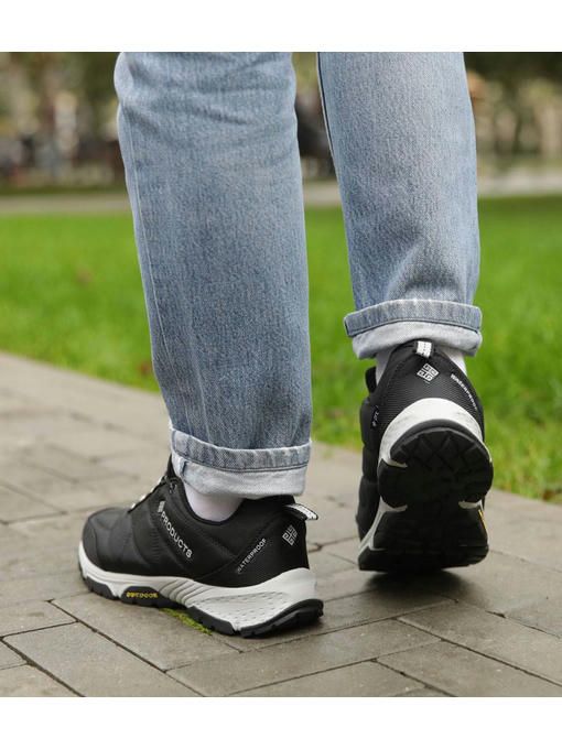 Кроссовки Черные серые. Выполнены из стойкого к влаге текстиля. Подошва – пена. Протектор из терморезины, внутри кроссовки на мембране, отлично сохраняют тепло и не пропускают влагу внутрь, им не страшны морозы вплоть до -10°C. Стелька текстильная, кроссовки легкие и удобные. Очень просты в уходе и отлично подойдут на каждый день.