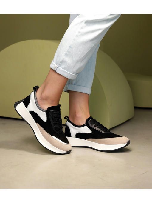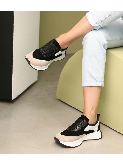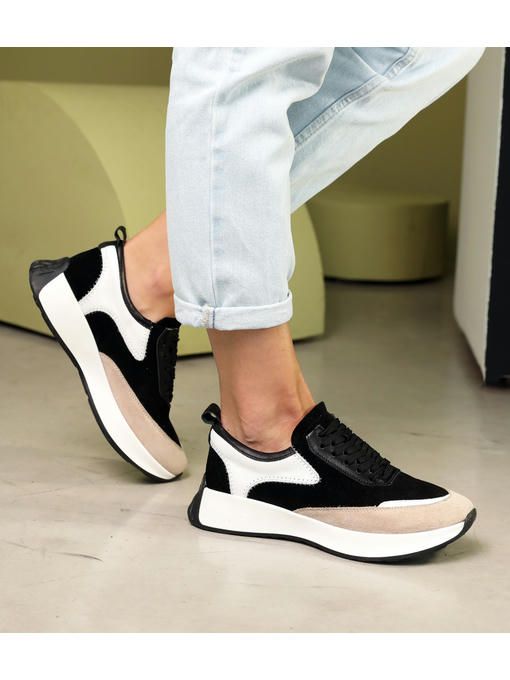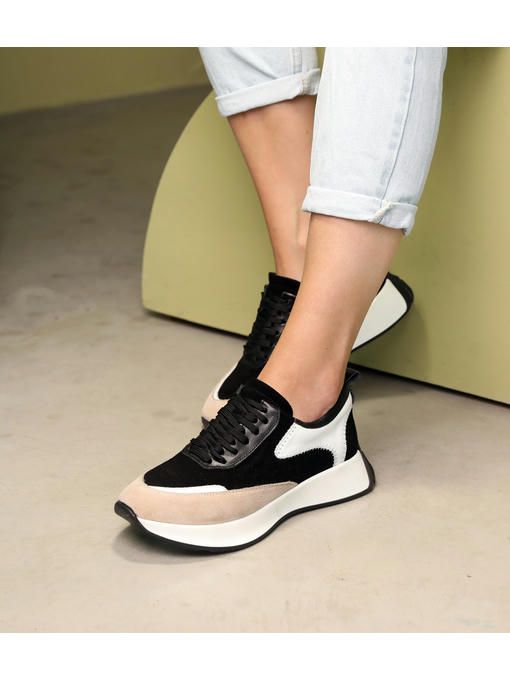 Cтильная и удобная модель женских кроссовок – лучший выбор для повседневной носки. Благодаря уникальной расцветке они будут гармонично сочетаться с любым образом. Изготовлены из натуральной замши, поэтому отличаются легкостью и практичностью. Внутренняя подкладка текстильная, стелька – кожаная, просиликоненная, придает комфорт во время хождения. Пара без шнурков, поэтому максимально легко и быстро обуваются (шнуровка – часть дизайна). Практическая подошва – EVA, обеспечивает непревзойденное удобство, ее высота – 2,5-4,5 см; Кроссовки очень легкие, вес полупарка – 310 грамм.