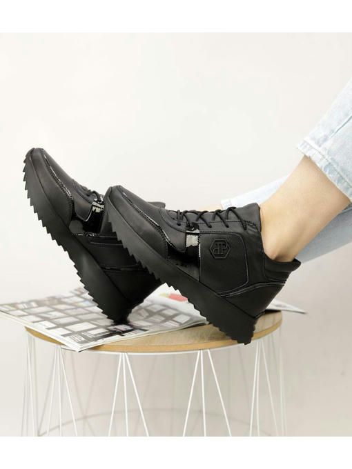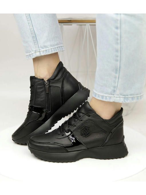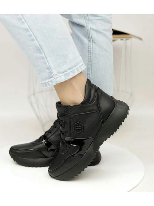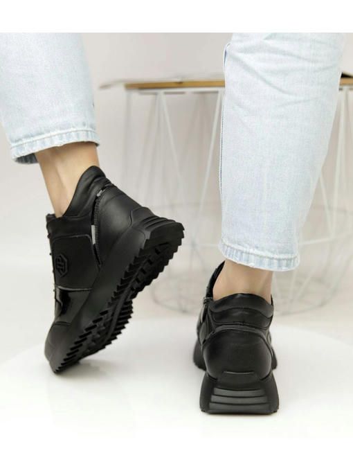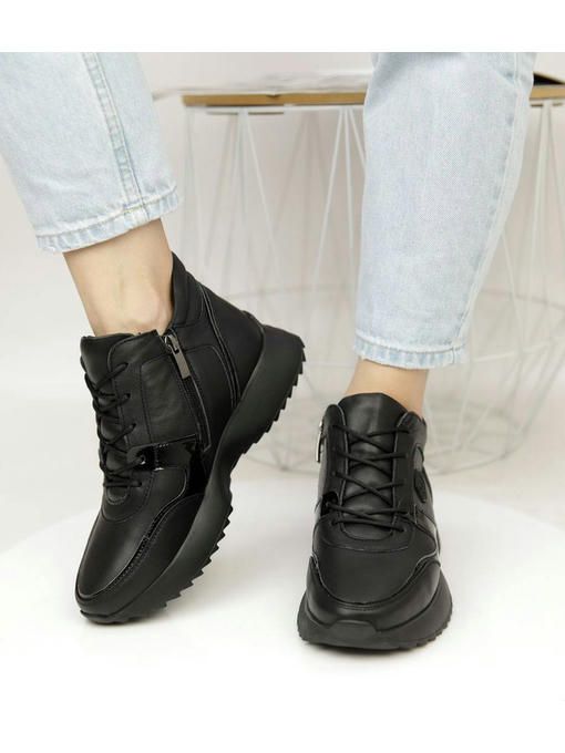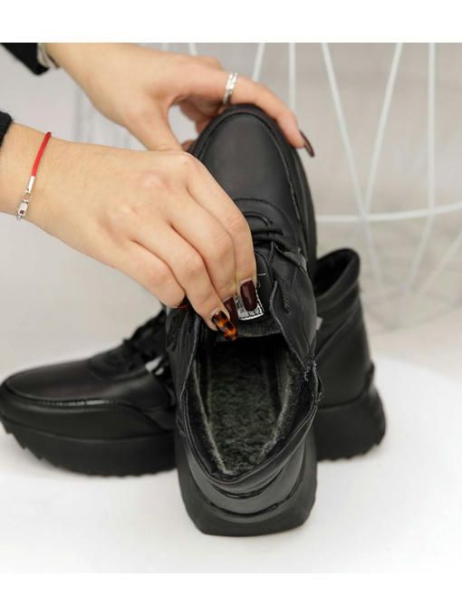 Универсальная модель кроссовок в черном цвете. Пара выполнена из натуральной кожи, вес полупарка всего 300 грамм. Внутренняя подкладка из меха, очень приятная на ощупь, стелька с меха, удобная, утепленная. Пара невероятно комфортно ощущается на ножках. Кроссовки на замке, легко и быстро обуваются и прекрасно подойдут под любой Ваш образ.