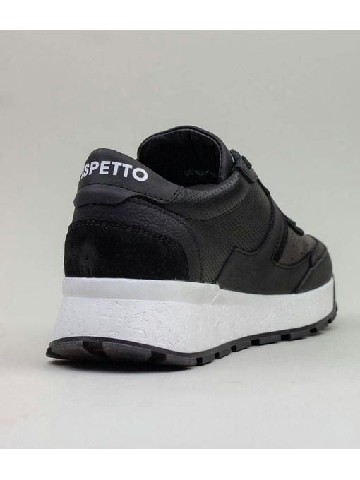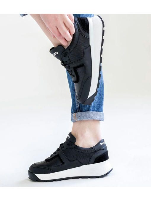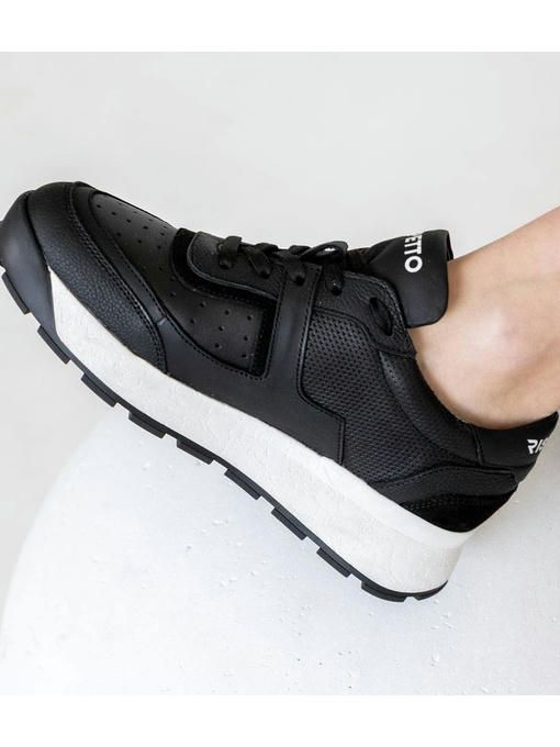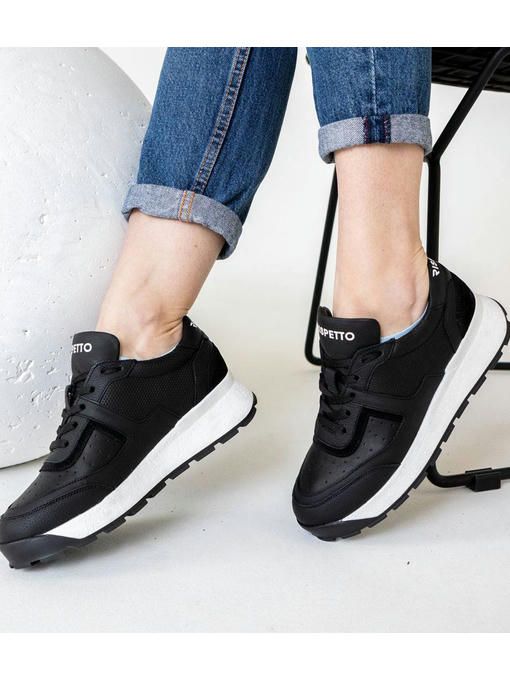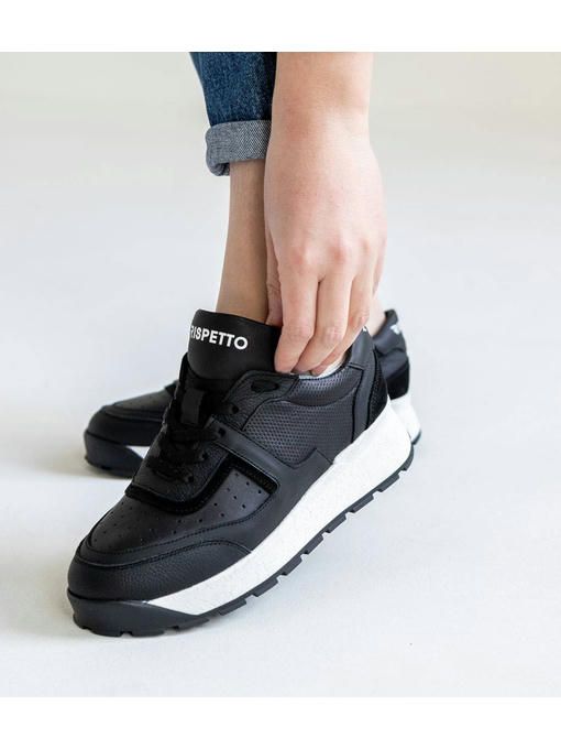 Черные кроссовки из натуральной кожи, сзади с замшевой вставкой. Модель очень удобная, подойдет к каждому Вашему образу и будет привлекать внимание окружающих. Кожаная стелька обеспечит комфорт в течение всего дня.