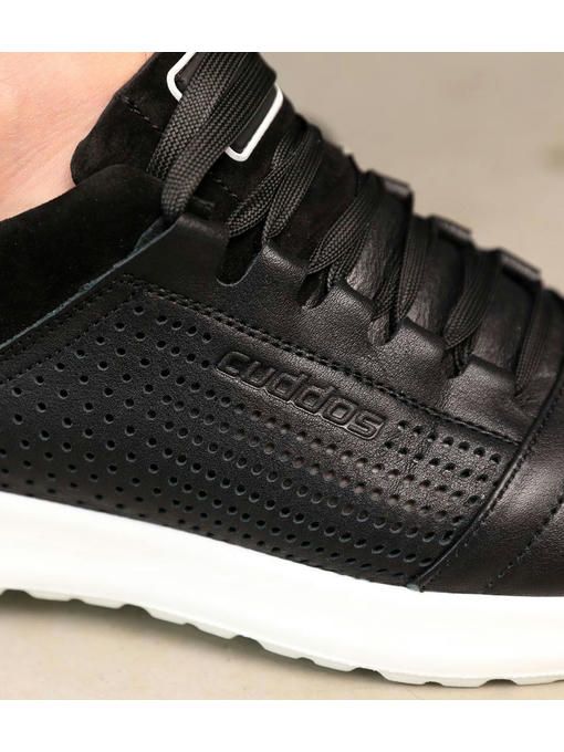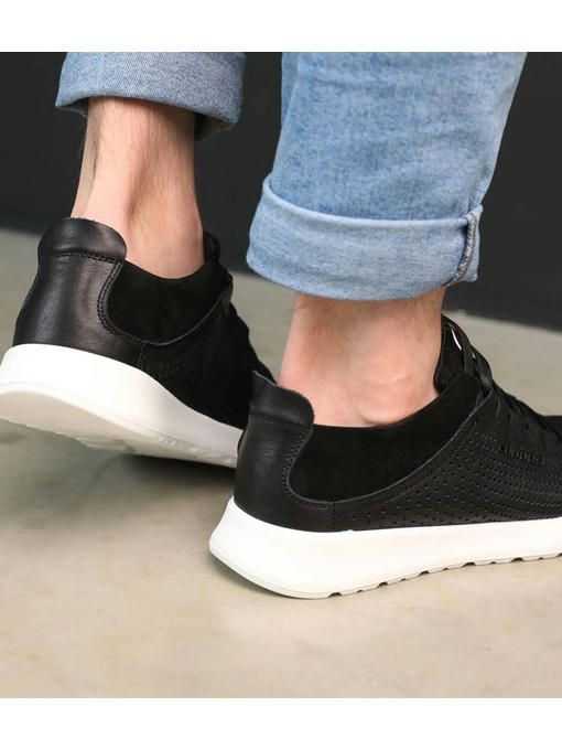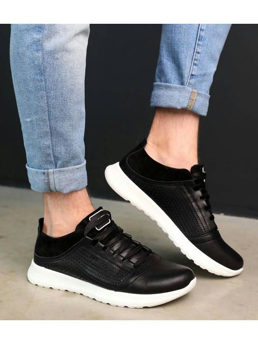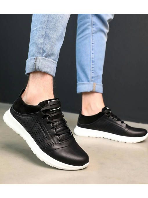 Очень удобные кроссовки изготовлены в стильном черном цвете. Прекрасно подойдут на каждый день, ведь модель выполнена полностью из натуральной кожи, с перфорацией, что обеспечит превосходную воздухопроницаемость. Внутренняя кожаная подкладка, стелька кожаная, просиликоненная, что обеспечит комфорт в течение всего дня. Подошва – EVA, износостойкая. Кроссовки легкие, максимально удобные, сдержанный дизайн обеспечивает универсальность в плане комбинирования с одеждой разных стилей.