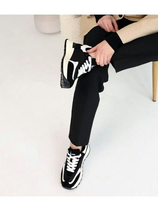 Стильные кроссовки со стильным сочетанием черного и белого цвета. Выполнены из натуральной замши и текстиля. Невероятно удобная и легкая модель, вес полпарка всего 270 грамм. Кроссовки станут отличным элементом Вашего образа и будут привлекать внимание окружающих.