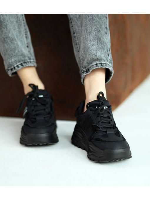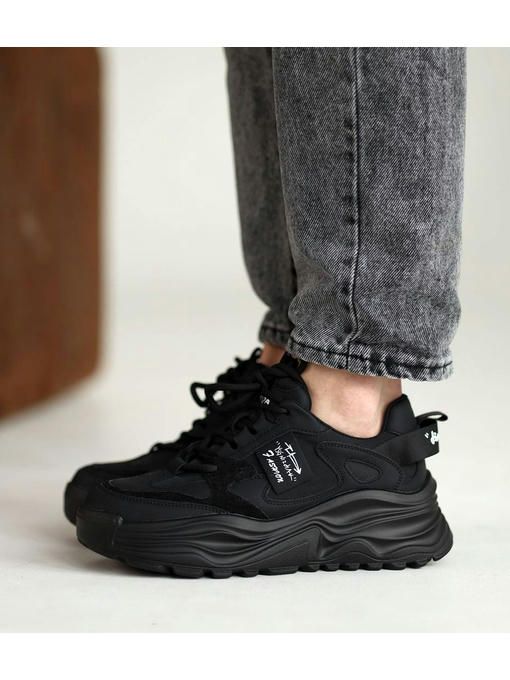 Универсальная модель кроссовок в черном цвете. Пара изготовлена из сочетания натуральной кожи, текстиля и замши. Кроссовки легкие, вес полупарка всего 300 грамм. Внутренняя подкладка кожаная, стелька – memory, кожаная. Подошва износостойкая, ее высота – 3-5 см; Кроссовки невероятно комфортно чувствуется на ножках, прекрасно подойдут под любой Ваш образ.