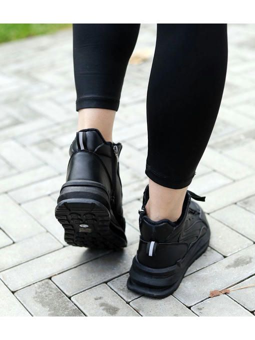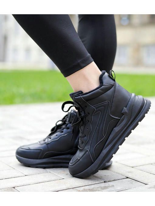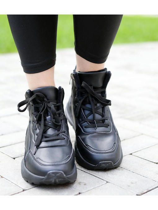Черные кроссовки из экокожи. Невероятно стильная, практичная и легкая пара. Внутри утепленные искусственным мехом. Кроссовки подойдут как для ежедневного использования, так и на выход, с ними каждый образ будет более удачным.