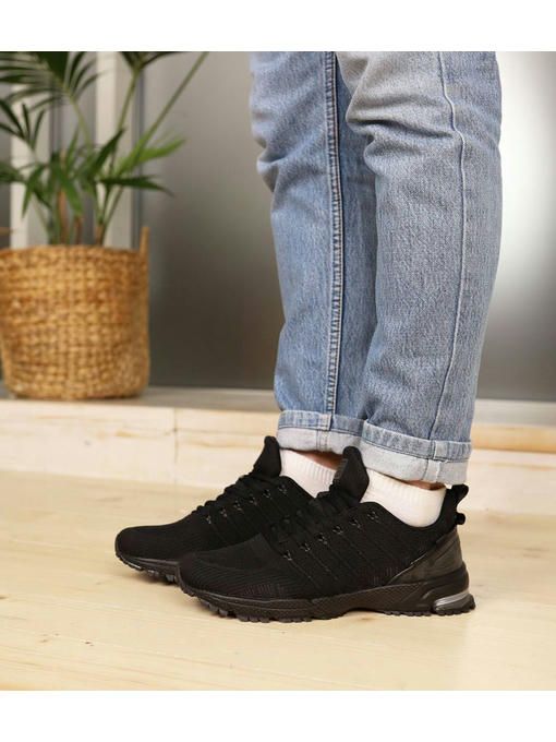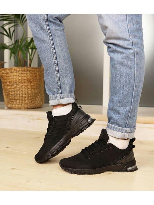 Мужские кроссовки в черном цвете. Кроссовки легкие, вес полупарка – 270 гр, снаружи и внутри выполнены из текстиля, удобная стелька, текстильная. Подошва – пена, легкая и добавляет удобства во время хождения. Кроссовки маломерят, поэтому обращайте внимание на размерную таблицу.
