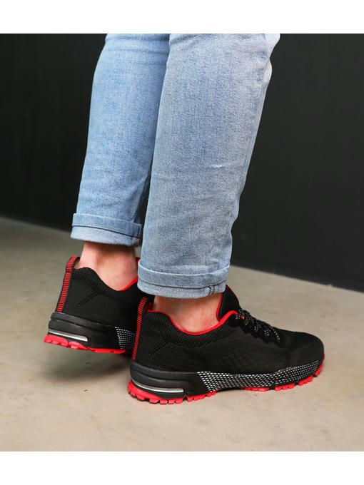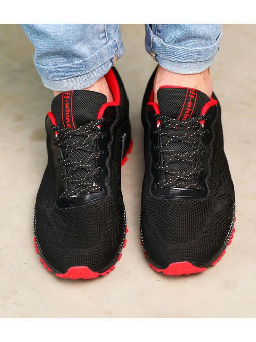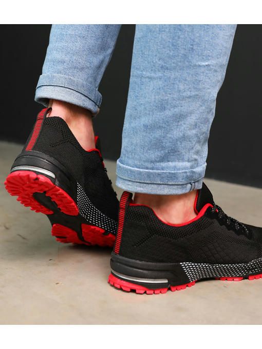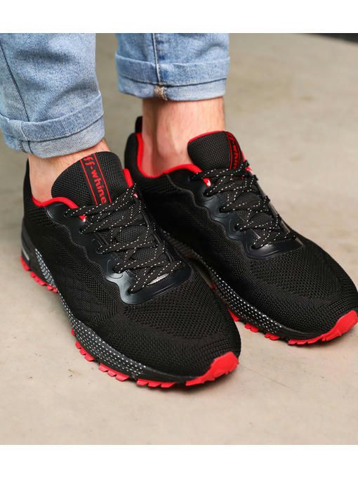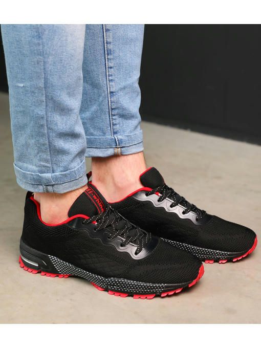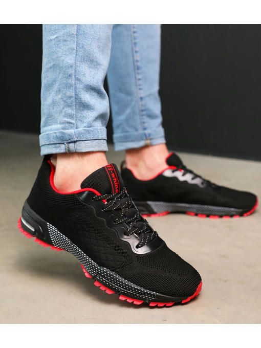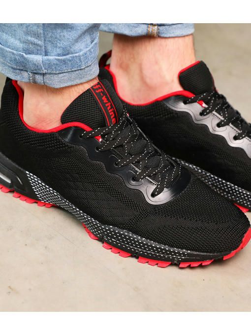 Мужские кроссовки в стильном черно-красном сочетании. За счет воздухопроницаемого материала поверхности – дыхательной сетки – они обладают чрезвычайной легкостью. Внутренняя подкладка и стелька – текстильные, обеспечивают удобство во время хождения. Благодаря своей функциональности пара подходит как для ежедневной носки, так и для активных тренировок. Утолщенная рифленая подошва обеспечивает высокий уровень амортизации и сцепления, что гарантирует комфорт.