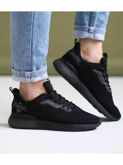Мужские кроссовки в черном базовом цвете. Кроссовки стильные, легкие, выполнены из текстиля, внутри текстиля, стелька удобная, текстильная. Подошва – пена, легкая и добавляет удобства во время хождения. Кроссовки маломерят, поэтому обращайте внимание на размерную таблицу.