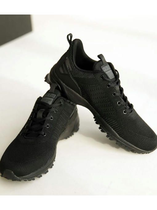 Мужские кроссовки в черном цвете. Кроссовки легкие, снаружи и внутри выполнены из текстиля, удобная стелька, текстильная. Подошва – пена, легкая и добавляет удобства во время хождения. Кроссовки маломерят, поэтому обращайте внимание на размерную таблицу.