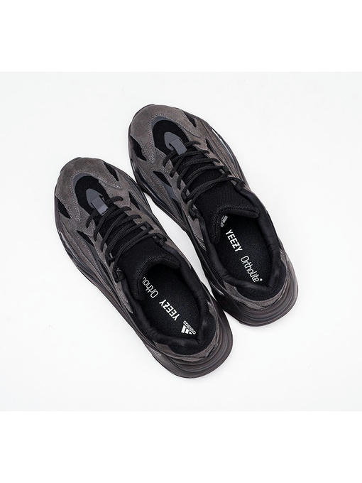 Кроссовки Adidas Yeezy Boost 700 v2 – вторая версия знаменитой обуви спортивного бренда, созданной в сотрудничестве с музыкантом Канье Уэстом. Визуально кроссовки практически не отличаются от первой версии, но стали более удобными при ношении. Верхняя часть изготовлена из сочетания кожи, замши, нубука и нейлона. Такое сочетание облегчает вес обуви и позволяет создать внутри комфортный микроклимат. Резиновая подошва, созданная по технологии «Boost», амортизирует стопу и имеет небольшой удельный вес. Светоотражающие вставки в верхней части кроссовок – фирменная деталь обуви. Рисунок протектор, сочетает зигзагообразный рисунок и «пятна» контакта.
