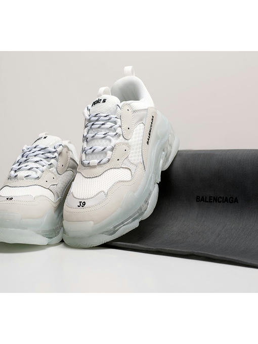 Balenciaga Triple S — стильные кроссовки с ярким выделяющимся дизайном и повышенной комфортностью. Корпус изготовлен из мягких и эластичных материалов, которые, к тому же, неплохо пропускают воздух, обеспечивая правильное охлаждение стопы. Благодаря этому данная модель хорошо подходит для длительного ношения в течение дня. Мощная подошва не только хорошо стабилизирует стопу, но и обеспечивает глубокую амортизацию, придавая ходьбе комфорт и мягкость. Подошва разделена на два фрагмента, что улучшает подвижность ноги, а также избавляет от дискомфорта.