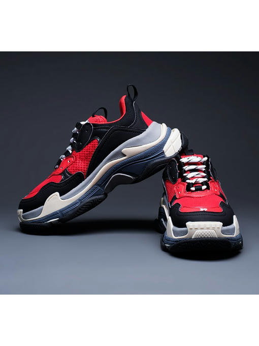 Кроссовки Balenciaga Triple S – обувь для повседневного ношения с оригинальным дизайном, в котором сочетается спорт и рабочая одежда. Современные материалы, из которых изготавливается верхняя часть кроссовок, обеспечивают комфортное ношение и вентиляцию стопы. Глубокая посадка и профиль кроссовок призваны обеспечить надежную фиксацию стопы и поддержку голеностопного сустава. Шнуровка с двумя рядами отверстий, позволяет фиксировать обувь на ногах владельца с учетом индивидуальных особенностей стоп. Для надежного сцепления с поверхностями протектор имеет участки с выделенными «пятнами контакта».