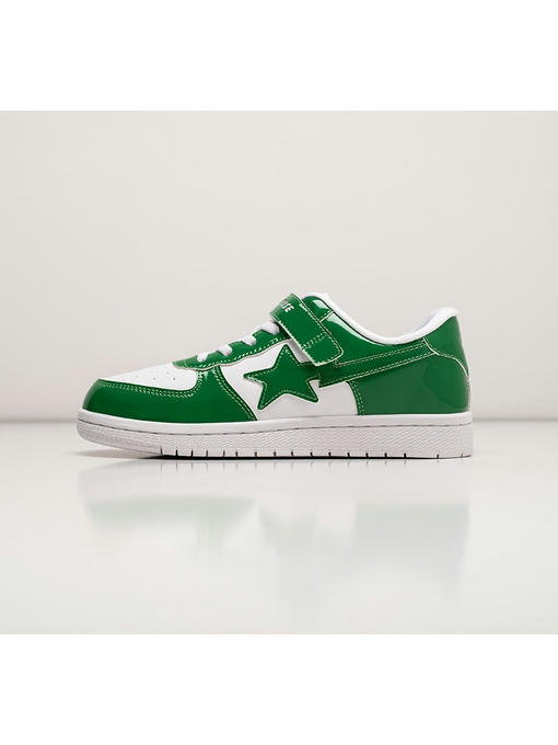 Кроссовки декорированы фирменным логотипом BAPE с падающей звездой на боковых