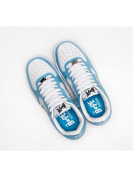 Кроссовки декорированы фирменным логотипом BAPE с падающей звездой на боковых