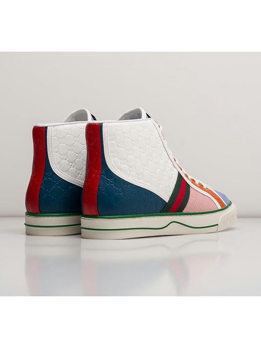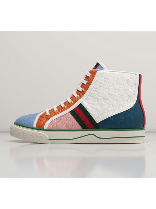 Цитировать архивы бренда, основанного Гуччио Гуччи, — один из любимых приемов Алессандро Микеле. Например, создавая высокие кеды Tennis 1977 дизайнер объединил два знаковых мотива: узор GG Supreme из 1960-х и ленту Web из 1950-х. Модель сшили из искусственной кожи. Высокий силует и резиновая подошва придаст вам уверенности на любой поверхности.