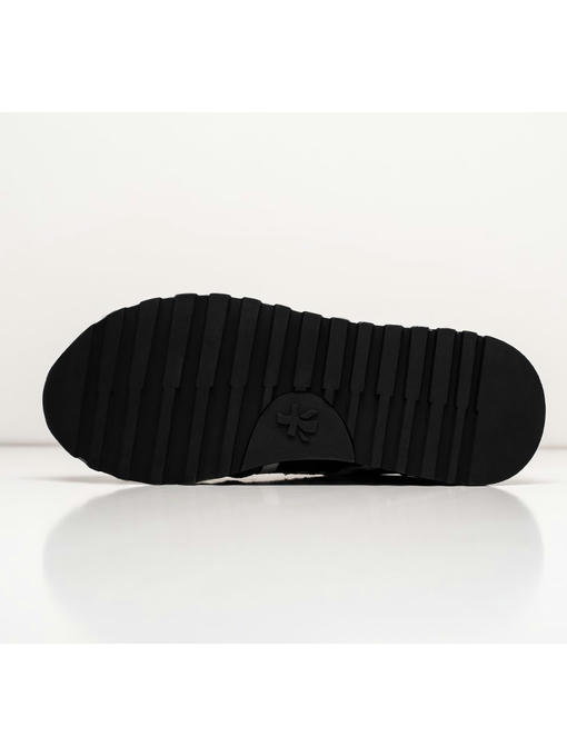 Промежуточная подошва из EVA украшена контрастными принтами, а износостойкая подметка