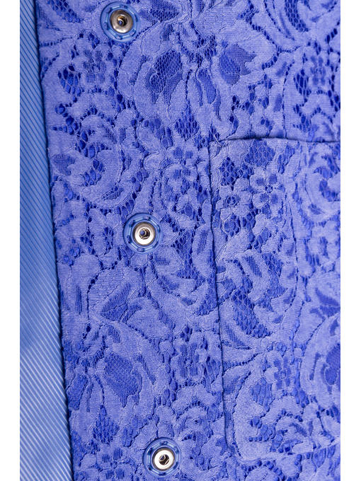 Нежный кружевной плащ прямого кроя. Короткая модель с потайной застежкой. Рукава три четверти. Горловина полукруглая. По бокам -накладные карманы прямоугольной формы.