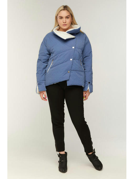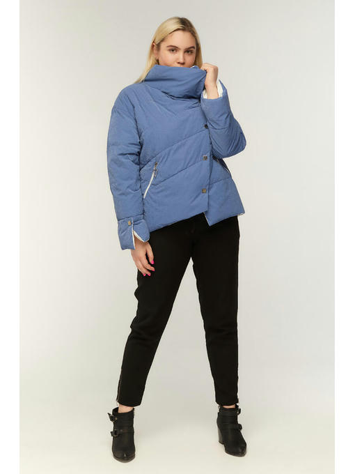 Весення куртка с А-образным силуэтом. На изделии расположены два втачных кармана на молнии. На рукавах фигурная манжета на кнопках. Модель застегивается на кнопки расположенные по диагонали, низ изделия ассиметричен. Ворот изделия отлетной. Основная ткань – плащевка Галактика 100% полиэстер, подкладка 50% полиэстер/50% хлопок. Наполнитель эко пух.
