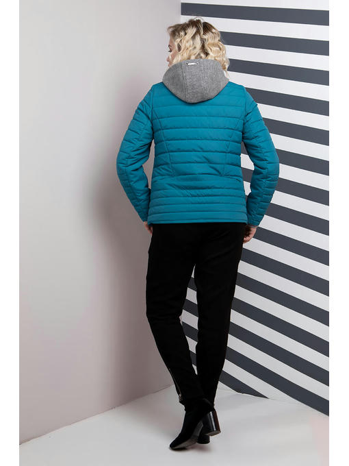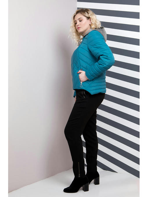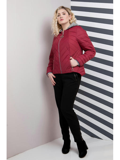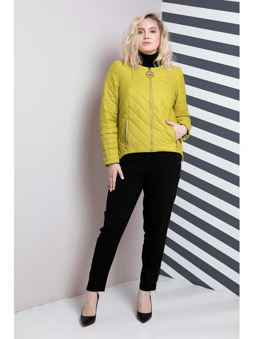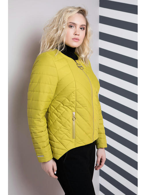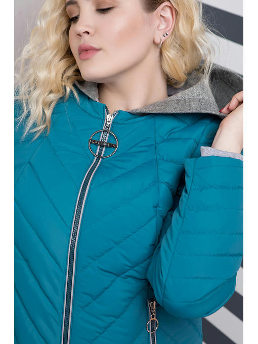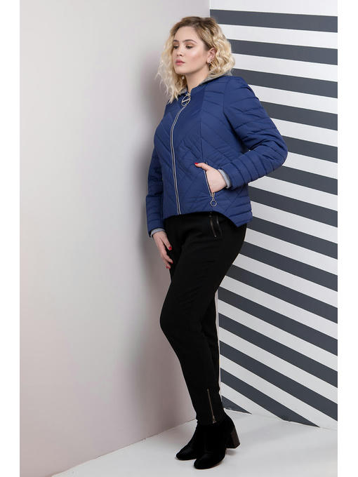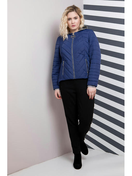 Куртка ассиметричная больших размеров. Силуэт прямой, нестандартный низ куртки делает ее эксклюзивной. Застегивается куртка на центральную молнию, два кармана на молнии, в комплекте так же идет съемный капюшон серого цвета. Спинка изделия декорированная разными видами стежки. Данная куртка подойдет ярким девушкам, которые хотят подчеркнуть свою индивидуальность.