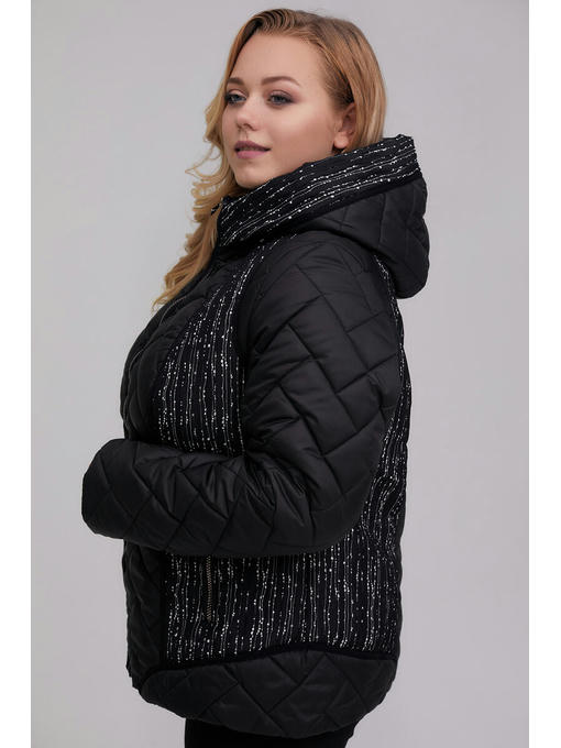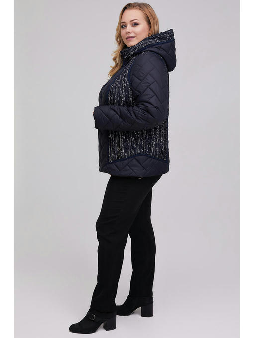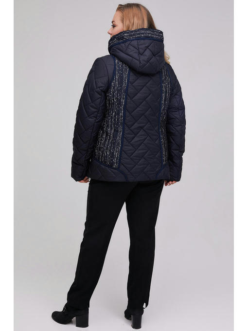 Стильная демисезонная куртка с вшитым капюшоном. Полуприталенный силуэт, комбинация стеганой плащеки паркет и жаккард. Спинка с рельефами, отделанными трикотажными бейками. Застежка центральная на молнию, карманы прорезные так же на молниях. По низу кулиса. Рукава втачные. Утеплитель микропух 100