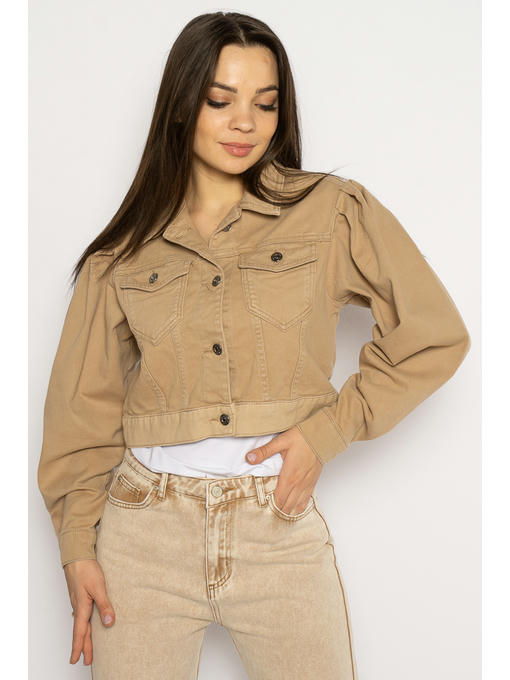 Оригинальная по дизайну женская джинсовая куртка выполнена из плотного хлопкового denim и имеет застежку на металлические пуговицы. Общее настроение модели отражает актуальную в данный момент стилистику 90х годов ХХ века и выражено объемным плечом с защипами, а также укороченным фасоном изделия. Дополнительное удобство обеспечивают два нагрудных кармана с клапаном.