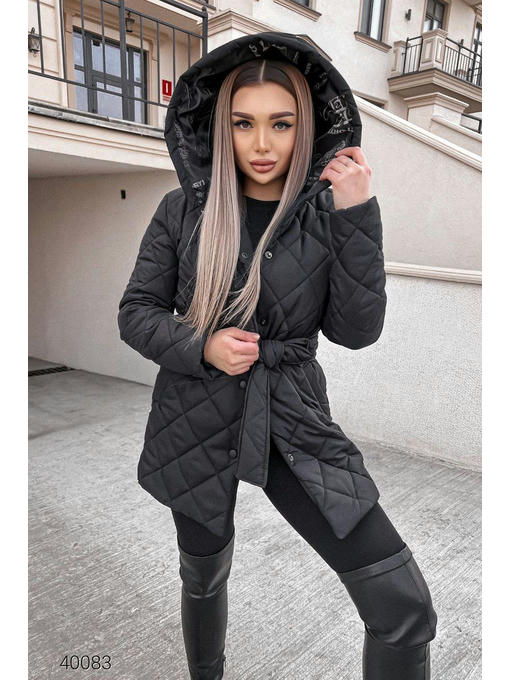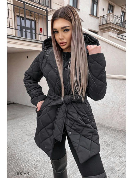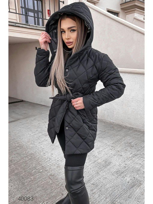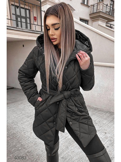 Куртка женская стеганая с капюшоном. Пояс в комплекте. Ткань: плащевка стеганая на силиконе 200 г. м2.