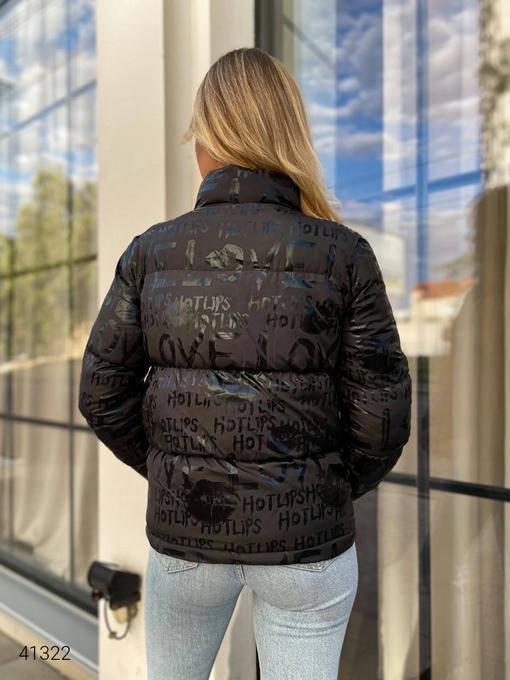 Куртка женская черная с принтом. Утеплитель синтепон. Размеры: 42 – 44 (М), 46 (L), 48 (ХL)
