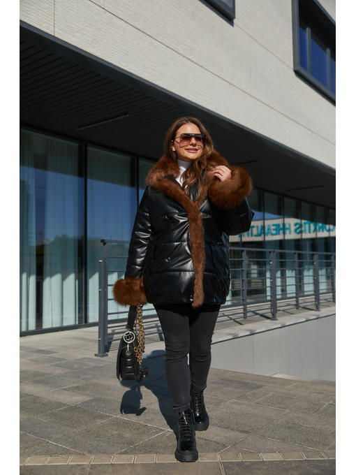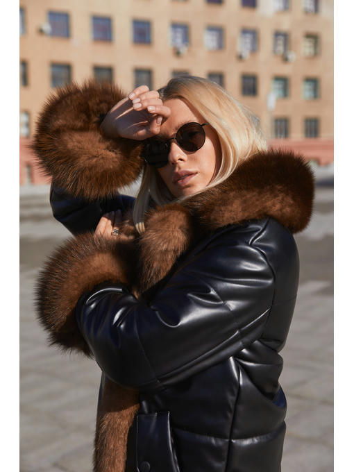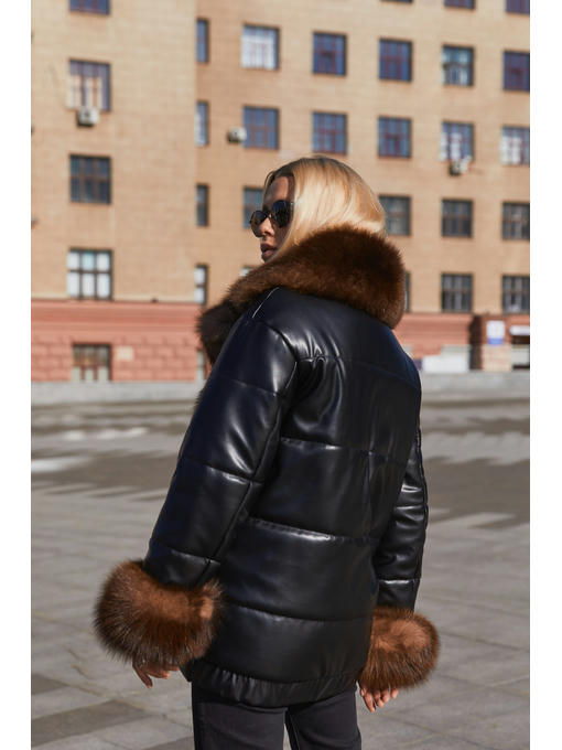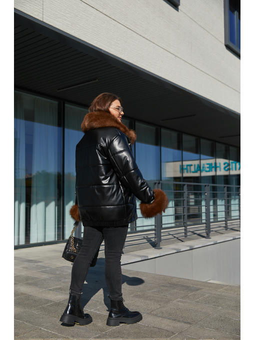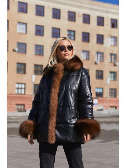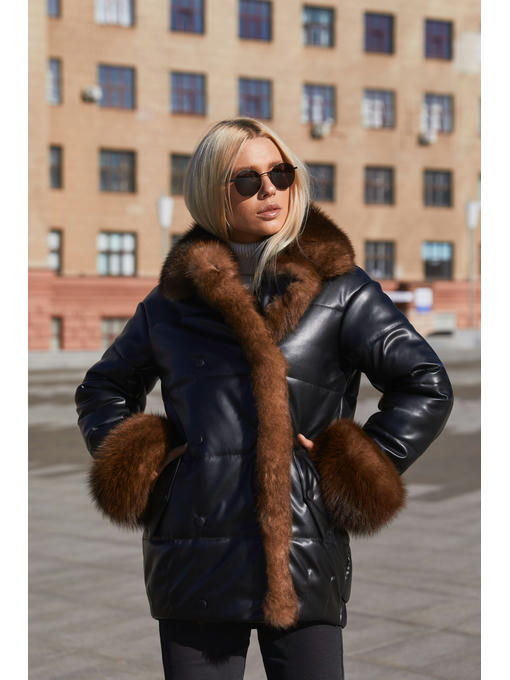 Укороченная куртка из экокожи с отделкой из натурального меха песца.