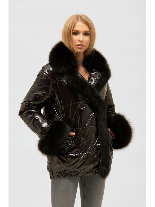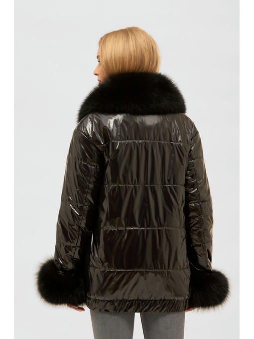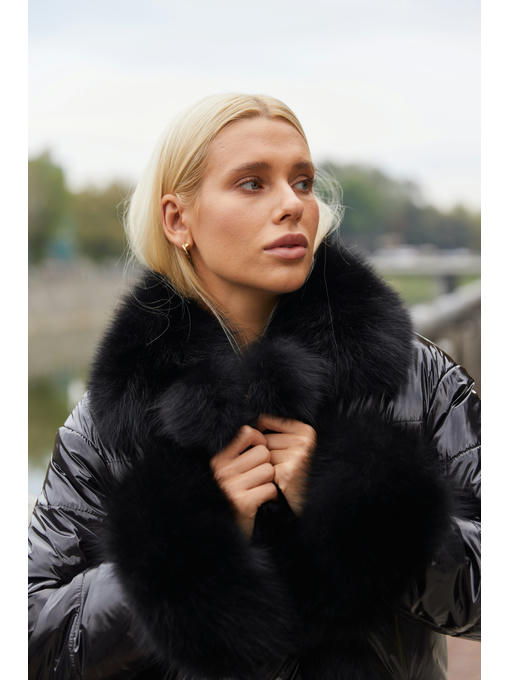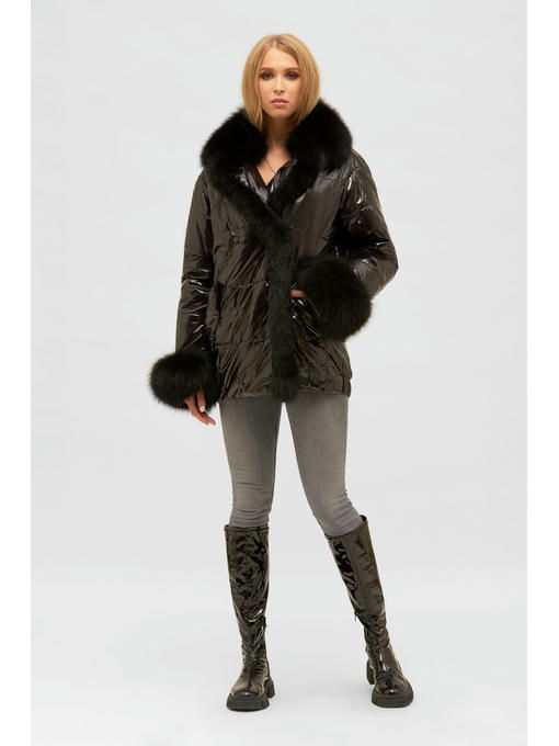 Укороченная куртка из плащевой ткани «монклер» с отделкой из натурального меха песца.