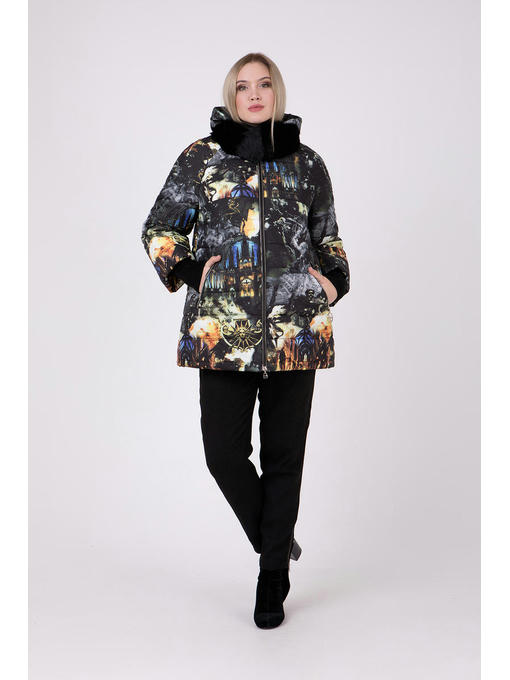 Оригинальная модель, удлиненная куртка из плащевой ткани с принтом и натуральным мехом. Укороченный рукав с трикотажной манжетой. Большой размерный ряд до 68 размера. Модель застегивается на молнию. Карманы на молниях, внутренний карман на липучке. Капюшон сьемный, мех сьемный, подкладочная ткань нейлон. Утеплитель slimtex 100 + силикон 100.