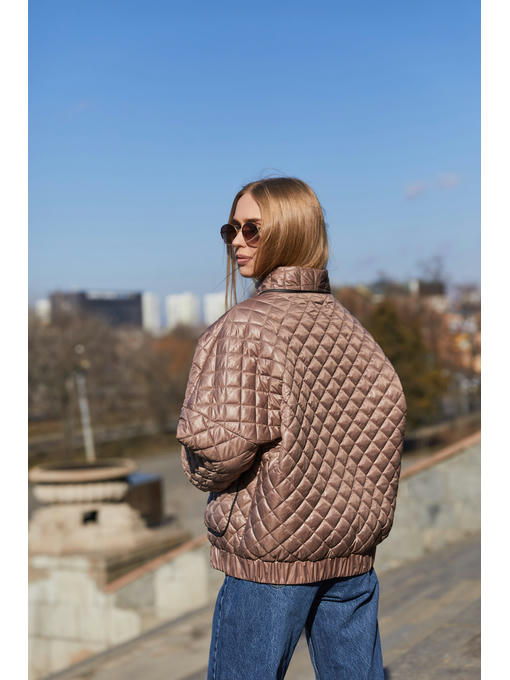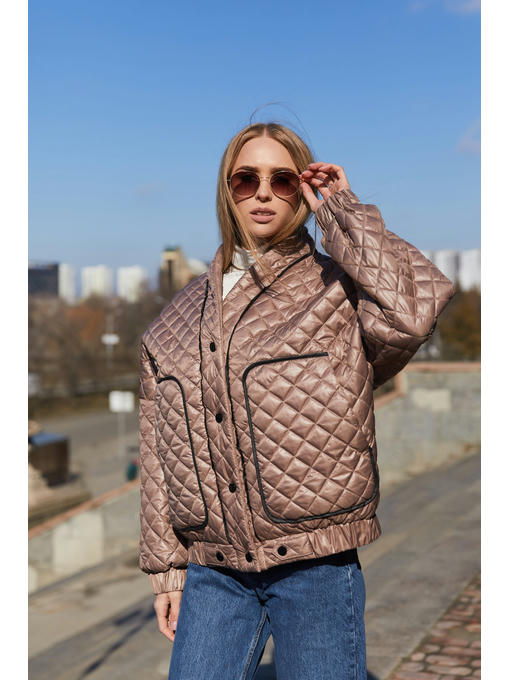 Демисезонная куртка — бомбер из стеганной ткани с контрастными кантами.