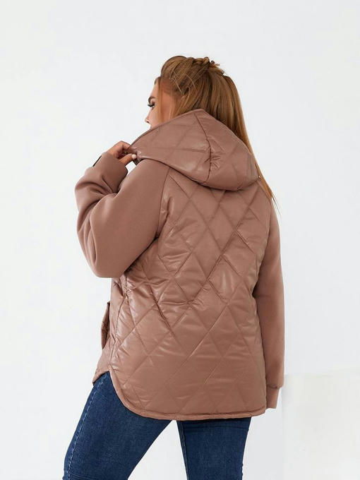 Стильная комбинированная куртка подойдет на сезон осень – весна, удобный глубокий капюшон на рукаве
