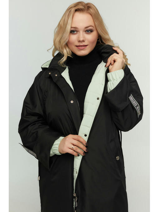 Красивый легкий плащ выполнен из черной плащевой ткани. Подкладка -клетка из хб. УтеплительSlimtex 100. Застегивается на центральнюю молнию, скрытую за планкой с кнопками. По спине и полочке есть регулируемые кулиски с длинными шнурками. Рукав цельнокройный с отворотом, который можно регулировать с помощью декоративных патов на кнопках. Есть манжет на широкой резинке в цвет подкладки.