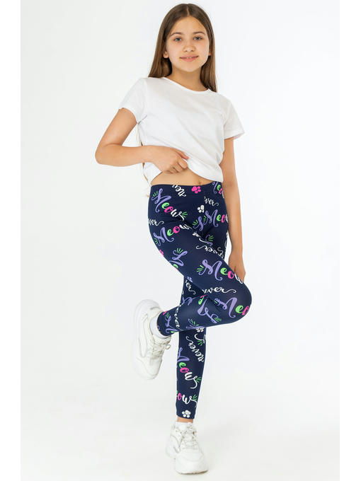 Облегающий крой, в поясе мягкая резинка. Хорошо тянутся. Легинсы с принтом Надписи очень удобные, из мягкого материала. Идеально подойдут для занятия спортом, гимнастики, повседневного использования, прогулок, путешествий, в школу на физкультуру, в детский сад. Легинсы для девочек выполнены из хлопкового трикотаж.