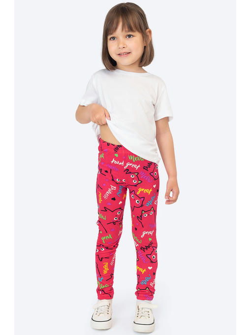 Лосины для девочек выполнены из ткани бамбук с высоким содержанием натурального хлопка. Детские легинсы украшены милым принтом котята.