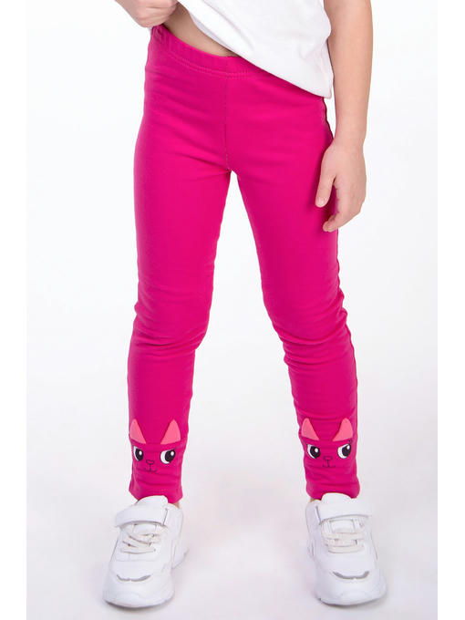 Теплые лосины для девочек выполнены из хлопковой дышащей ткани. Трикотаж футер двухнитка с начесом с добавлением лайкры приятно прилегает к телу, отлично переносит частые стирки без потери цвета. Детские розовые легинсы украшены забавным принтом мордочка животного и объемными ушками.