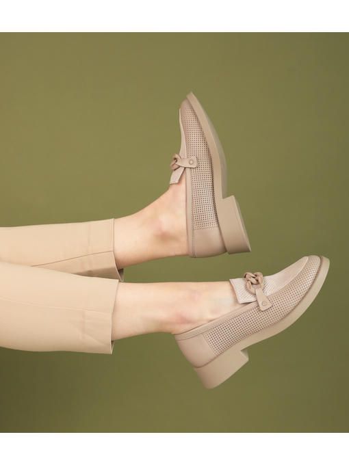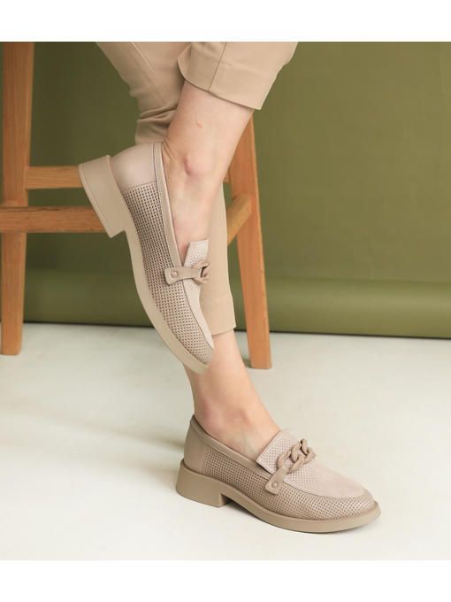 Обеспечить непревзойденный комфорт и при этом выглядеть изящно и стильно – вот главные критерии, к которым стремятся все модницы этого сезона. Женские лоферы в универсальном бежевом цвете помогут вам не только в этом, но и подчеркнут красоту любого образа, ведь модель выполнена с сочетанием натуральной рифленой кожи и замши. Спереди модель украшена массивной цепочкой. Легкие, вес полупарка всего 240 грамм. Подошва – EVA, износостойкая, высота подбора – 3,5 см; Прекрасно подойдут как для ежедневного использования, так и на выход, с ними каждый образ будет удачным.