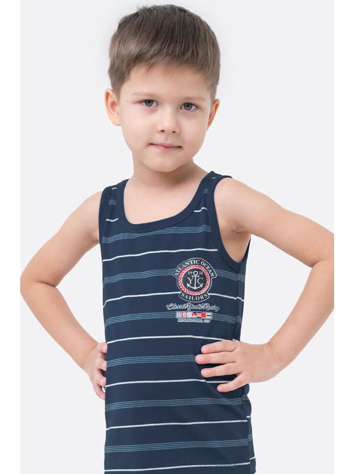 Майка прямого кроя на широких лямках и круглым вырезом на каждый день в детский сад, школу. Турецкое качество ткани нижнего детского белья для мальчиков гарантирует ее прочность.